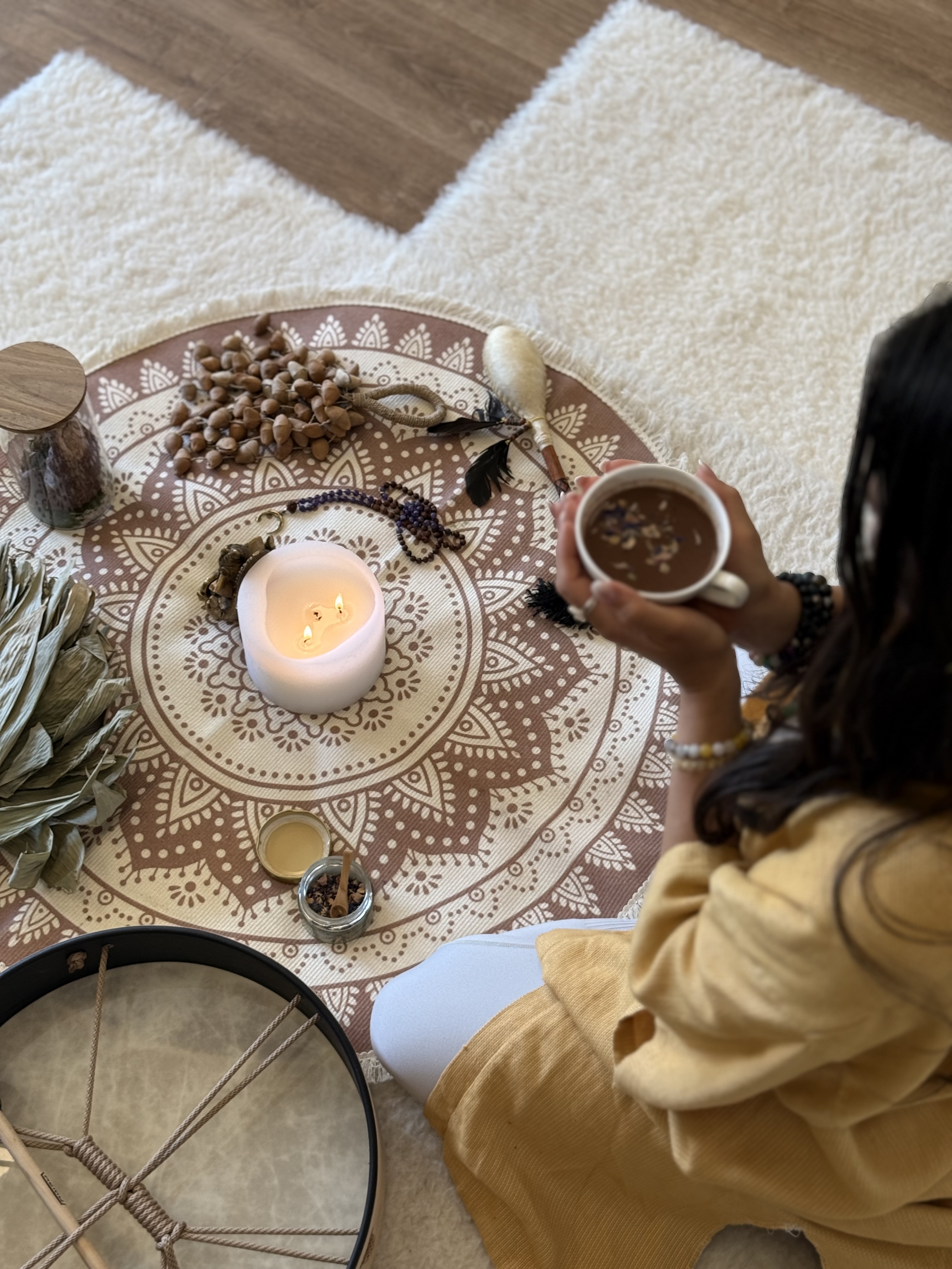 Wir beginnen mit einer zeremoniellen Kakao-Zeremonie, die uns hilft, das Herz zu öffnen und uns auf die Verbindung zu unserem inneren Kind auszurichten. Kakao hat eine sanft herzöffnende Wirkung und unterstützt den emotionalen Zugang.